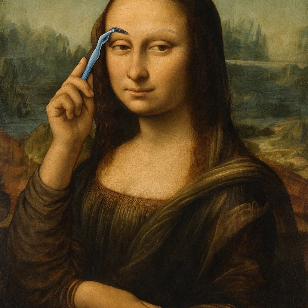 The Mona Lisa has no eyebrows because it was fashionable in Renaissance Florence to shave them off. Women of high society would pluck or shave their eyebrows and hairlines to achieve a high forehead, which was considered the height of beauty and sophistication. Leonardo da Vinci simply painted the current fashion trends.