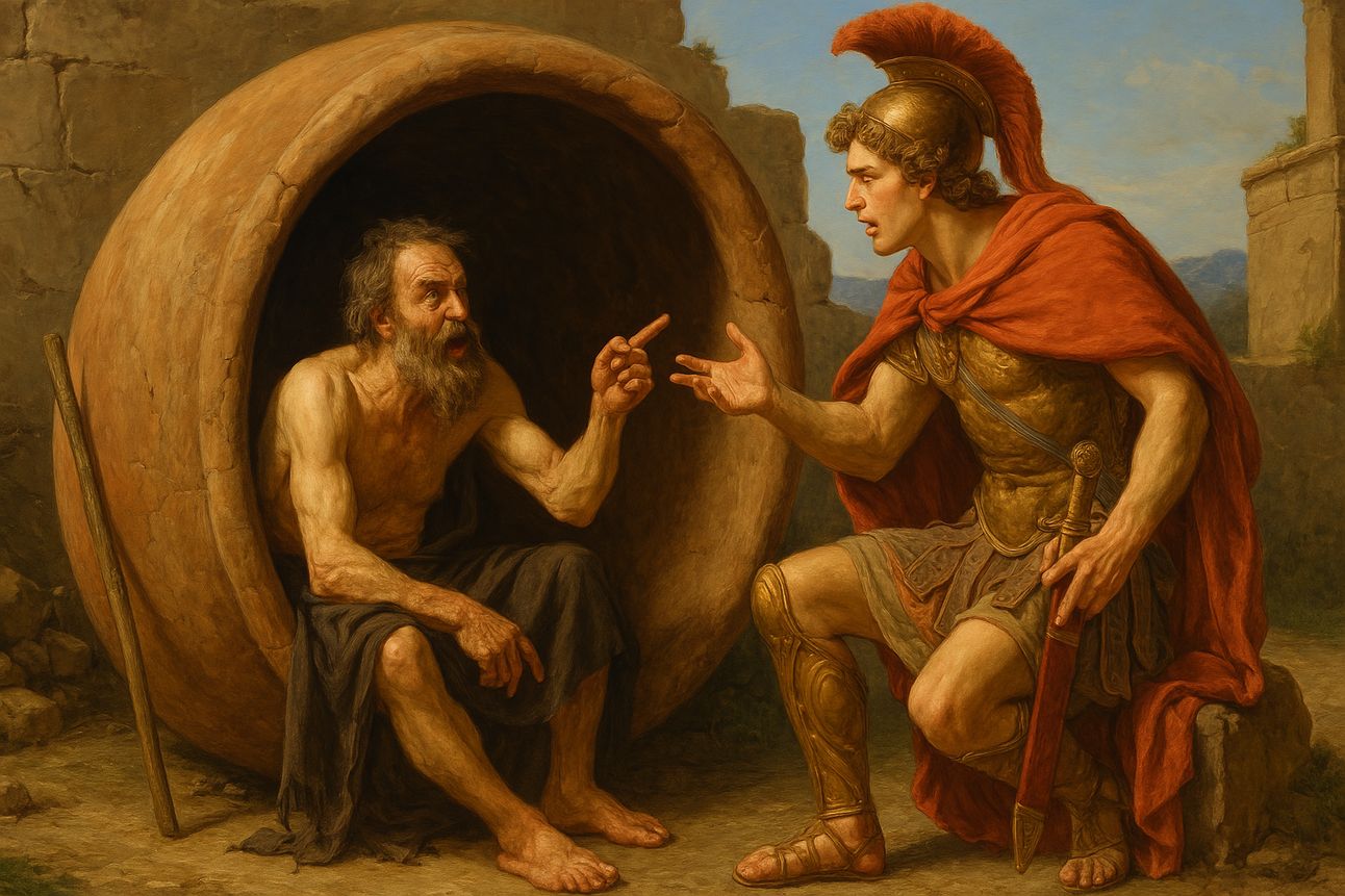 The Greek philosopher Diogenes of Sinope was basically the ancient world’s most committed minimalist—and professional troll. He lived in a large clay jar (often mistranslated as a barrel) in Athens, owned almost nothing, and made it his mission to expose the absurdity of social norms and materialism. But then Alexander the Great steps in. Curious about this eccentric thinker, the young conqueror visited Diogenes and asked if there was anything he could do for him. Diogenes? He looked up and replied: Yes, stand out of my sunlight Bold move, considering Alexander had an empire and Diogenes had... a jar. But instead of being insulted, Alexander reportedly said: If I were not Alexander, I would wish to be Diogenes.🗣️🏺👑