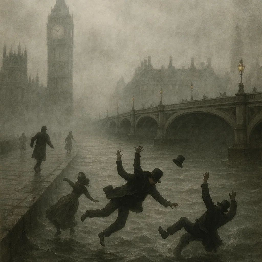 In 1856, a London fog rolled in so dense that people couldn’t see their own feet, and several pedestrians accidentally walked straight into the Thames and drowned. The fog was one of many infamous “pea soupers”, caused by a toxic mix of coal smoke and moisture. It wasn’t just gloomy — it was deadly, thick enough to swallow entire streets and turn day into a choking, yellow night. 🌫️☠️