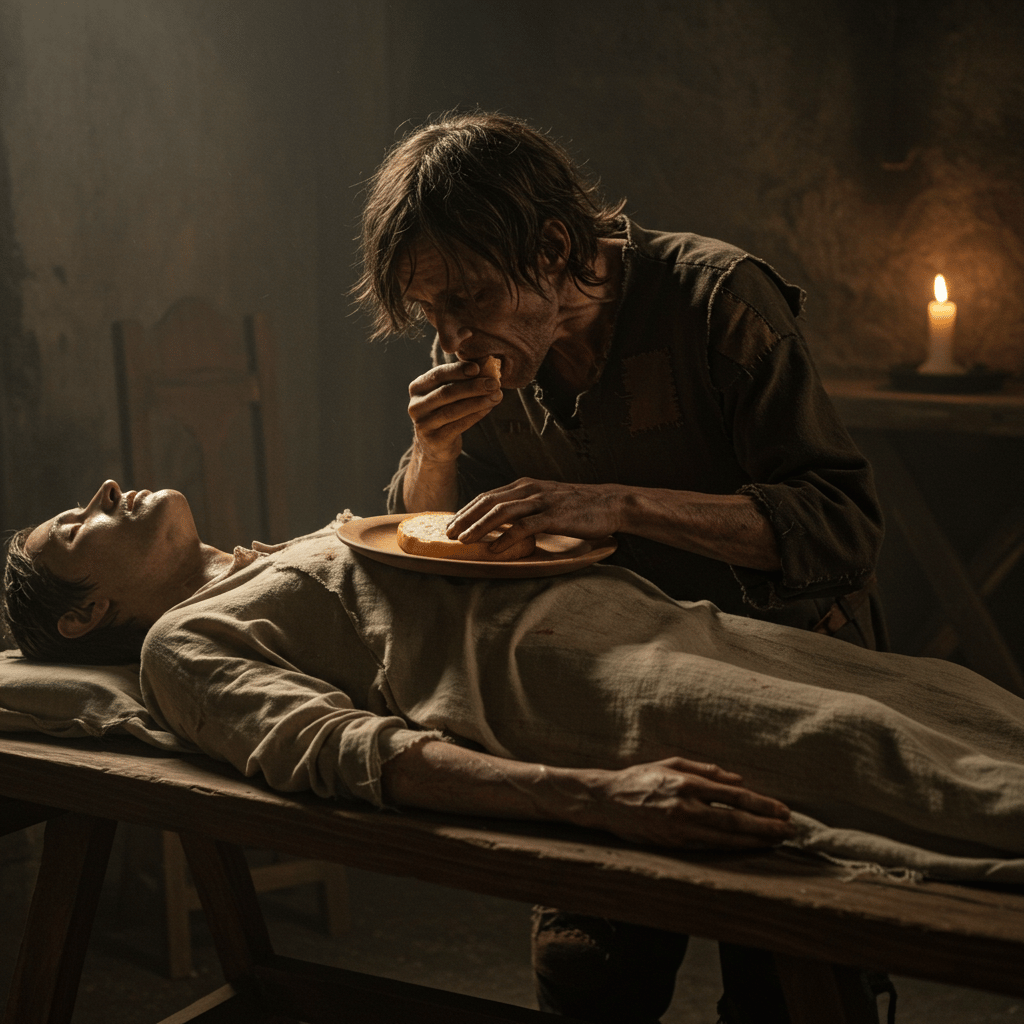 Medieval "sin eaters" were paid to eat meals off dead bodies to absorb the deceased's sins. Poor people would be hired to eat bread and drink beer placed on corpses, supposedly taking on the dead person's sins so they could enter heaven - sin eaters were social outcasts who lived as pariahs because they were "full of other people's sins."