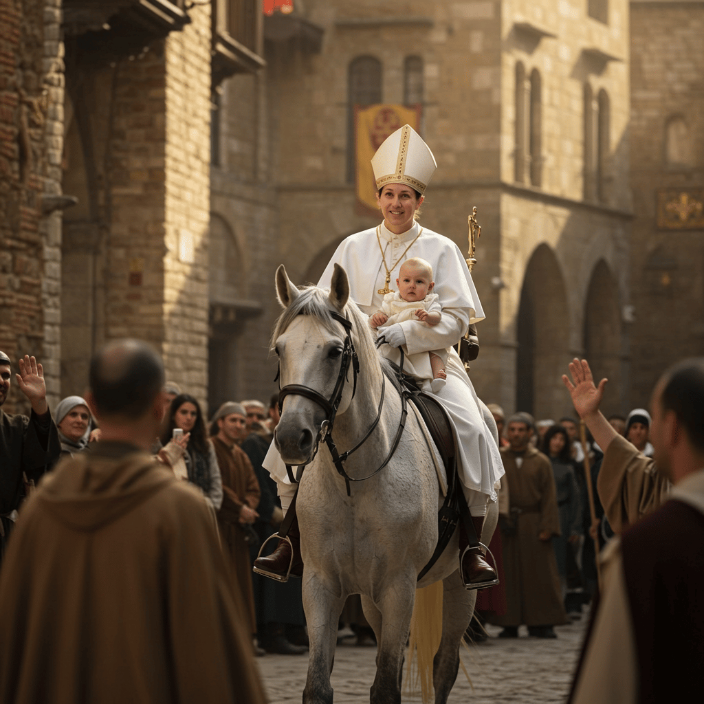 Pope Joan allegedly ruled as a male pope in the 9th century until giving birth during a procession. According to medieval legend, a woman disguised herself as a man and became pope - her secret was revealed when she went into labor while riding a horse through Rome. The Vatican denies this ever happened, but the avoided that street for centuries afterward.