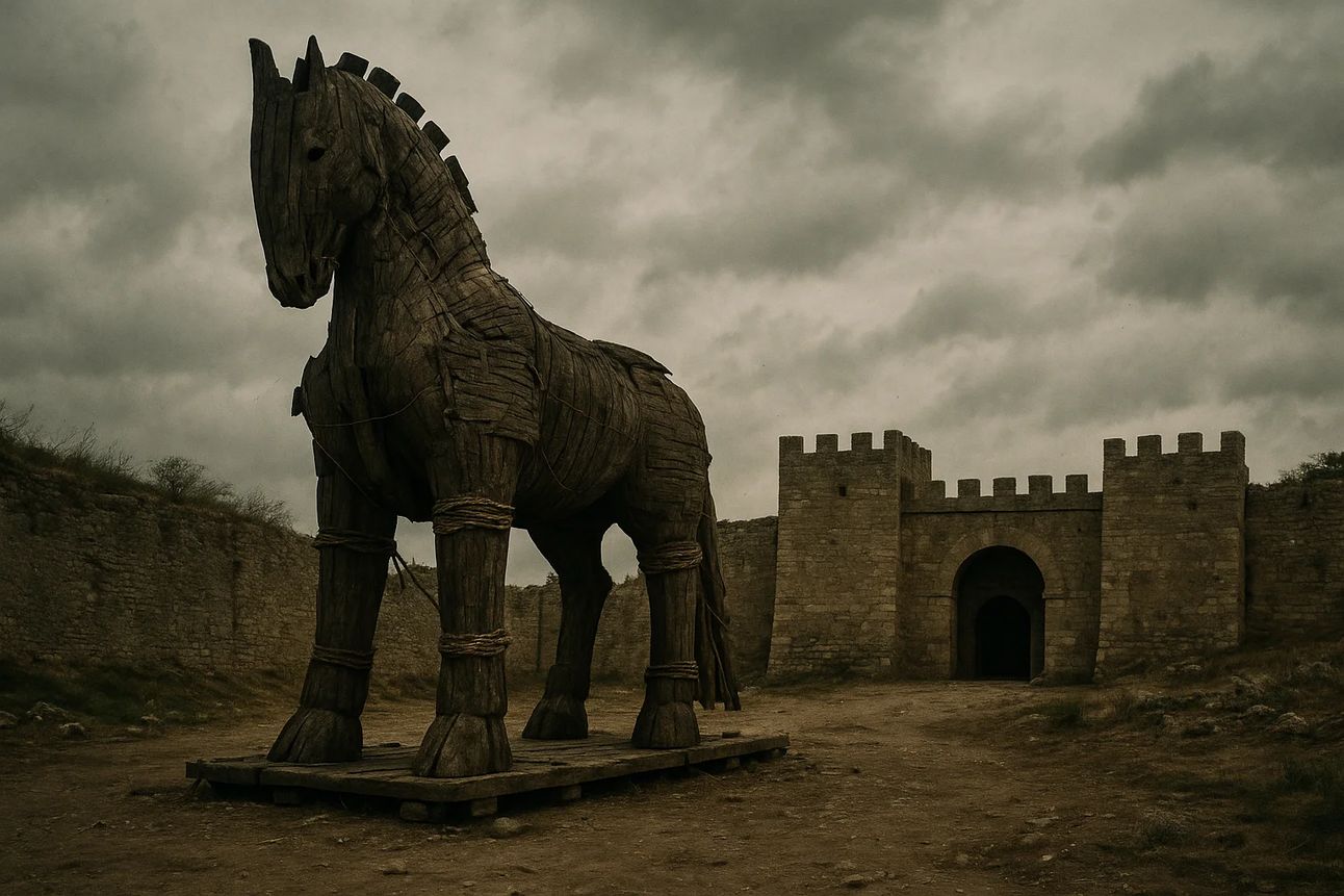 The Greeks made it look like they had finally given up and sailed away, leaving the horse behind as some kind of peace offering. The Trojans thought they’d won. They pulled the horse into the city as a trophy, thinking it was a gift or maybe a symbol of surrender. That night, while everyone in Troy was partying and celebrating, the Greek soldiers climbed out from inside the horse, opened the gates, and let the rest of the army—who had just been hiding nearby—sneak in.