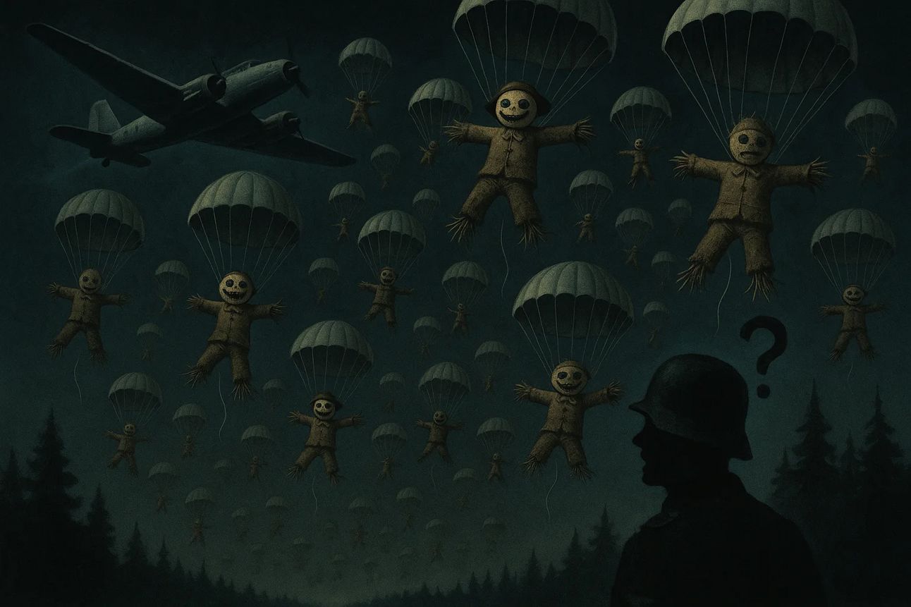 During World War II, on the night before D-Day (June 6, 1944), the Allies didn’t just send troops into Normandy — they also dropped a bunch of fake ones. As part of Operation Titanic, the U.S. and British forces dropped hundreds of dummy paratroopers, known as “Ruperts,” into enemy territory. These were stuffed figures, parachuted in to look like real soldiers from a distance. The goal? Confuse and distract German forces, making them think the real invasion was happening elsewhere. Some dummies even had explosives or noisemakers to simulate gunfire once they landed, just to sell the illusion harder. And it worked. Nazi commanders diverted troops away from real landing zones, giving Allied forces an edge. So yeah — the U.S. dropped scarecrow soldiers out of planes to outsmart Hitler. 🪂🧠🇺🇸.
